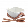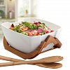 This serving set will help you to create a beautiful presentation of fruits, salad or any other dish. The generous capacity makes it perfect for everyday use of a large family or informal parties. Bamboo rack will keep the salad bowl firm on the table and add some design charm to the kitchen interior. Wooden flatware will provide easy salad mixing and its serving to the plates. The porcelain bowl is dishwasher safe for fast cleaning.